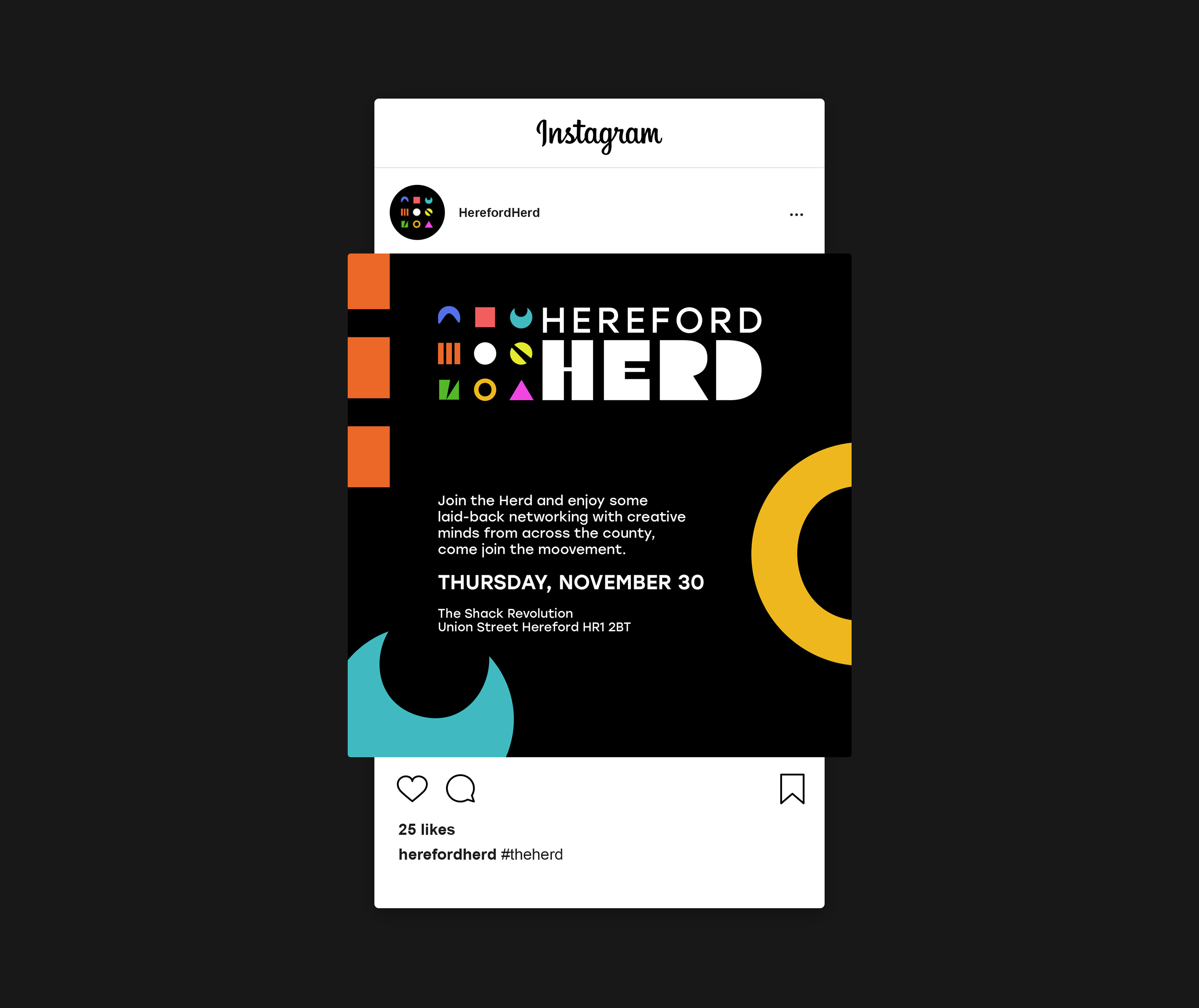 Creating a Brand Identity for Hereford Herd, a new design agency. My identity represents the different creatives at the agency showcased through the mix icons and colours surrounded at a table, creating designs together.